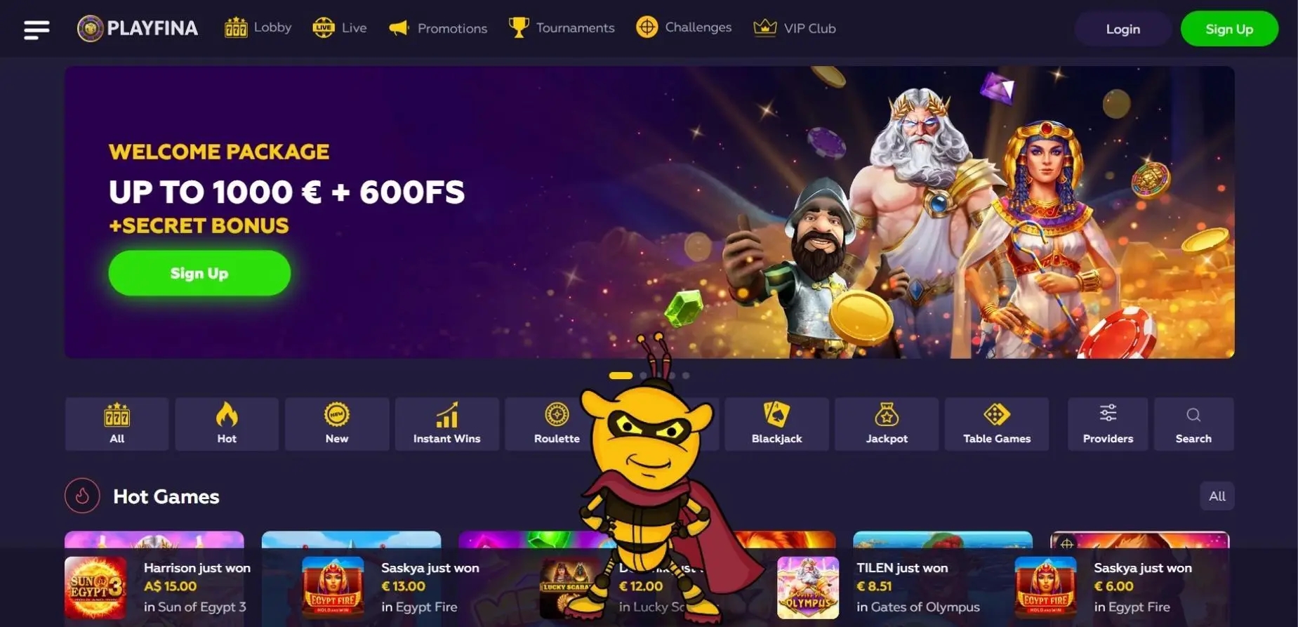 Start Playing: Use your bonus funds to explore the wide variety of games available at Playfina Casino. Play your favorite slots or try out new titles without risking your own money.